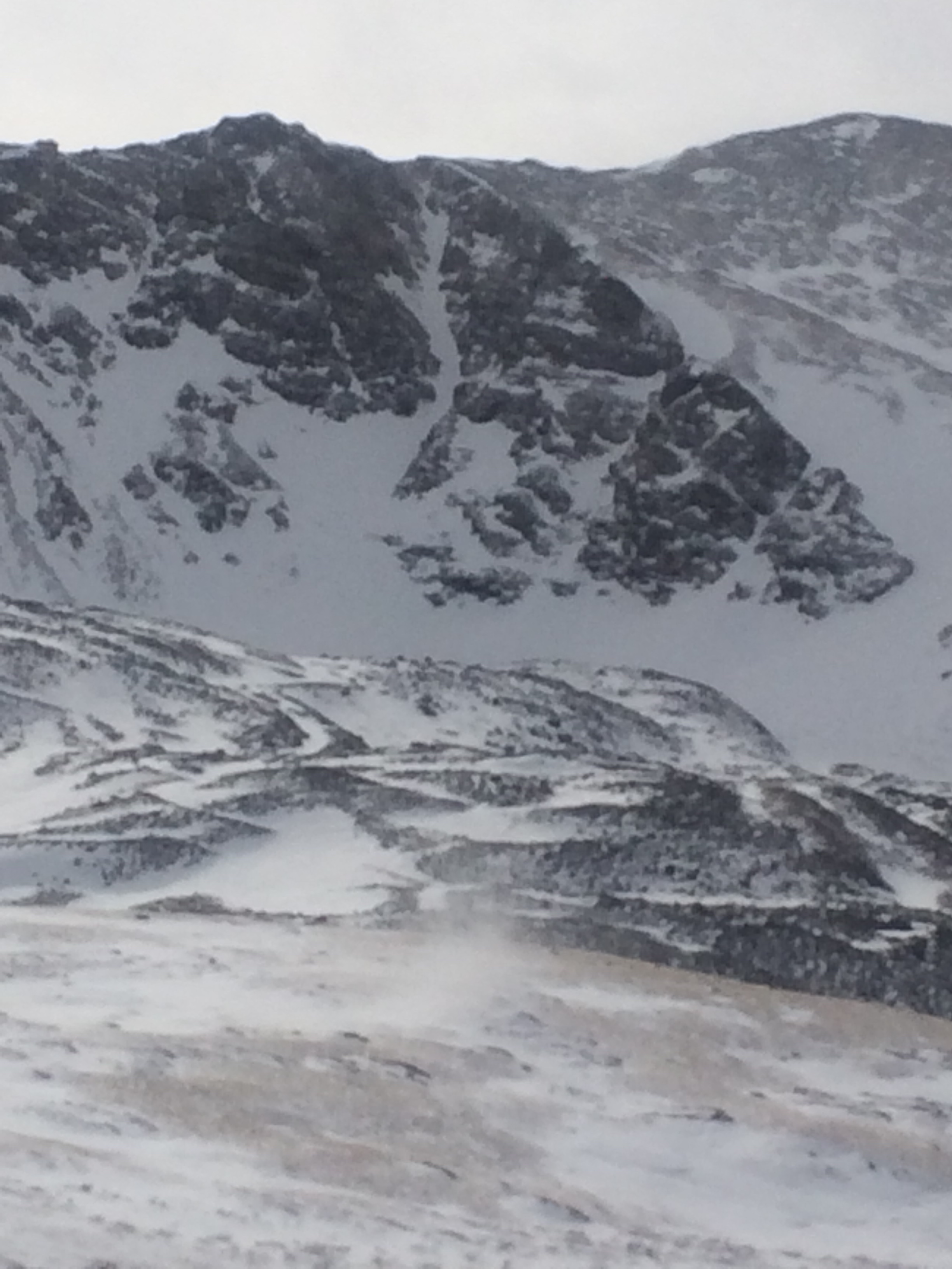 An ill-fated attempt at Grays and Torreys in February…We made it within 400 feet of the summit, but the winds began gusting to more than 100 mph and we decided to pull the plug and get the heck out of there! It was utter survival of the wind chills—notice my sheik look (in the middle). We were hoping to ski the Dead Dog Couloir if conditions looked good, but we didn’t even get up there to see it.