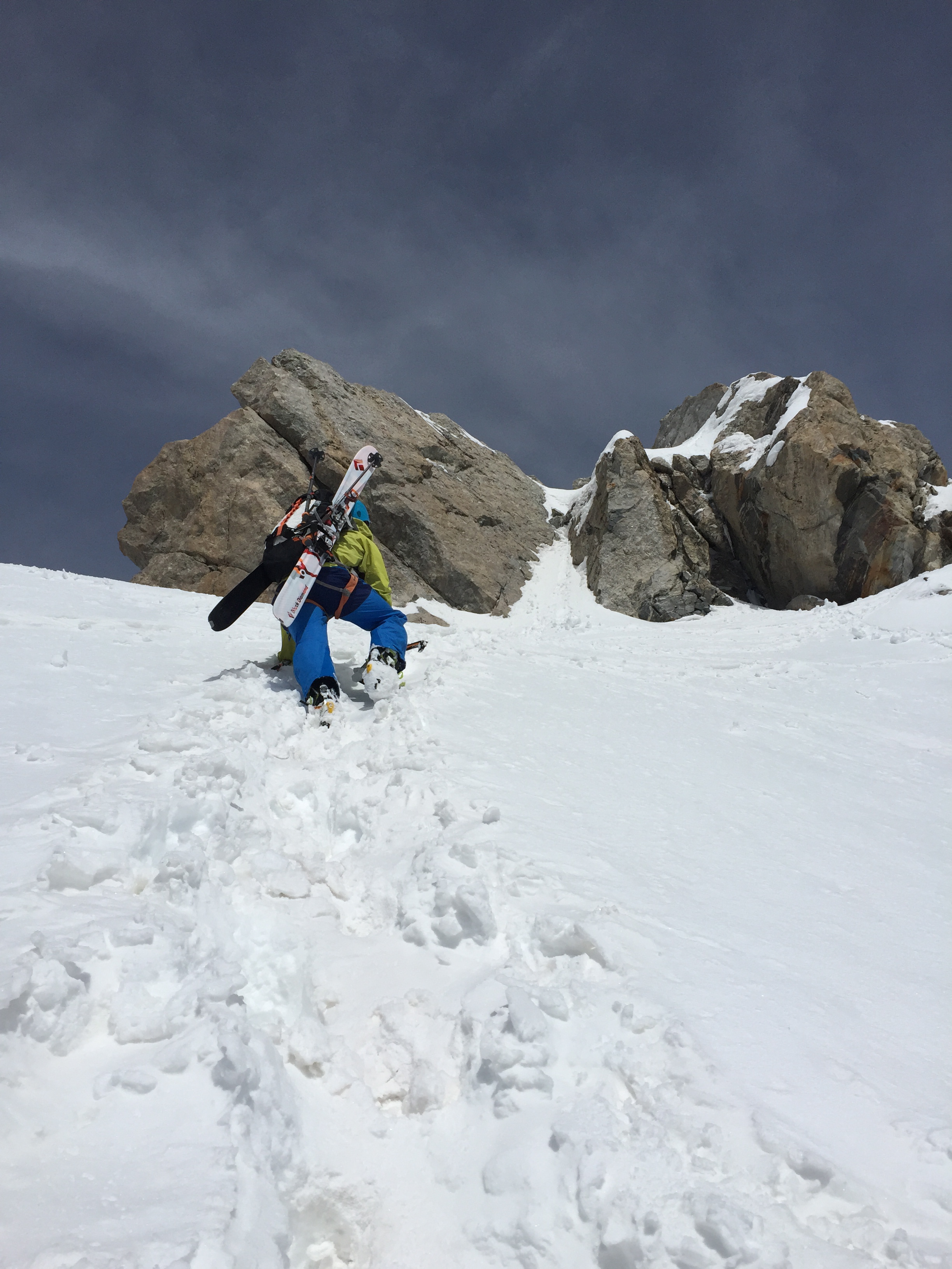 I knew it would be one long, hard slog. I had climbed the Grand via the lower and upper Exum route a few summers ago. It took my buddy and I 15 hours car to car—and that was hiking and rock climbing. That didn’t include lugging skis, boots, crampons and ice axes.